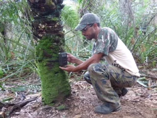 Infra-red sensor activated cameras are distributed on the study area to count systematically potential prey and jaguar abundance. Capture-recapture models using photographed individuals will be used to estimate and monitor the jaguar populations.